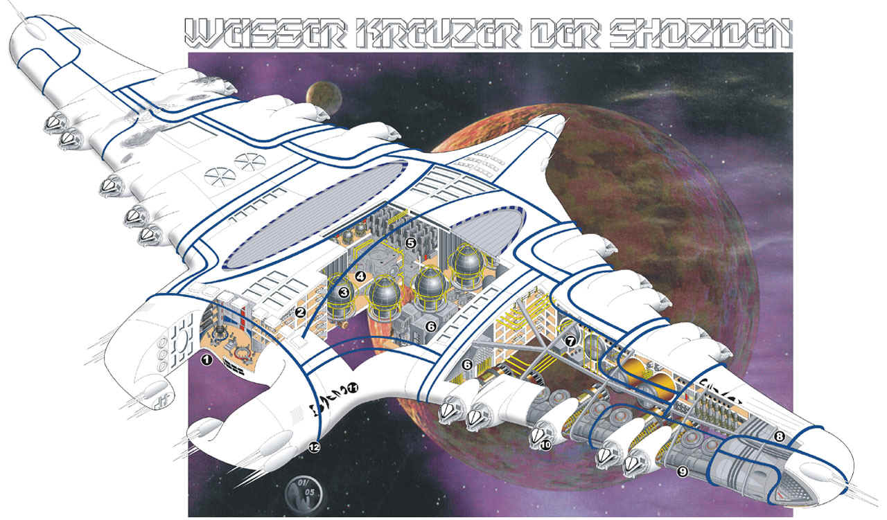 Weisser Kreuzer der Shoziden Extraterestrische Raumschiffe (Shoziden) - Text im pdf.Format (Acrobat-Reader erforderlich) |