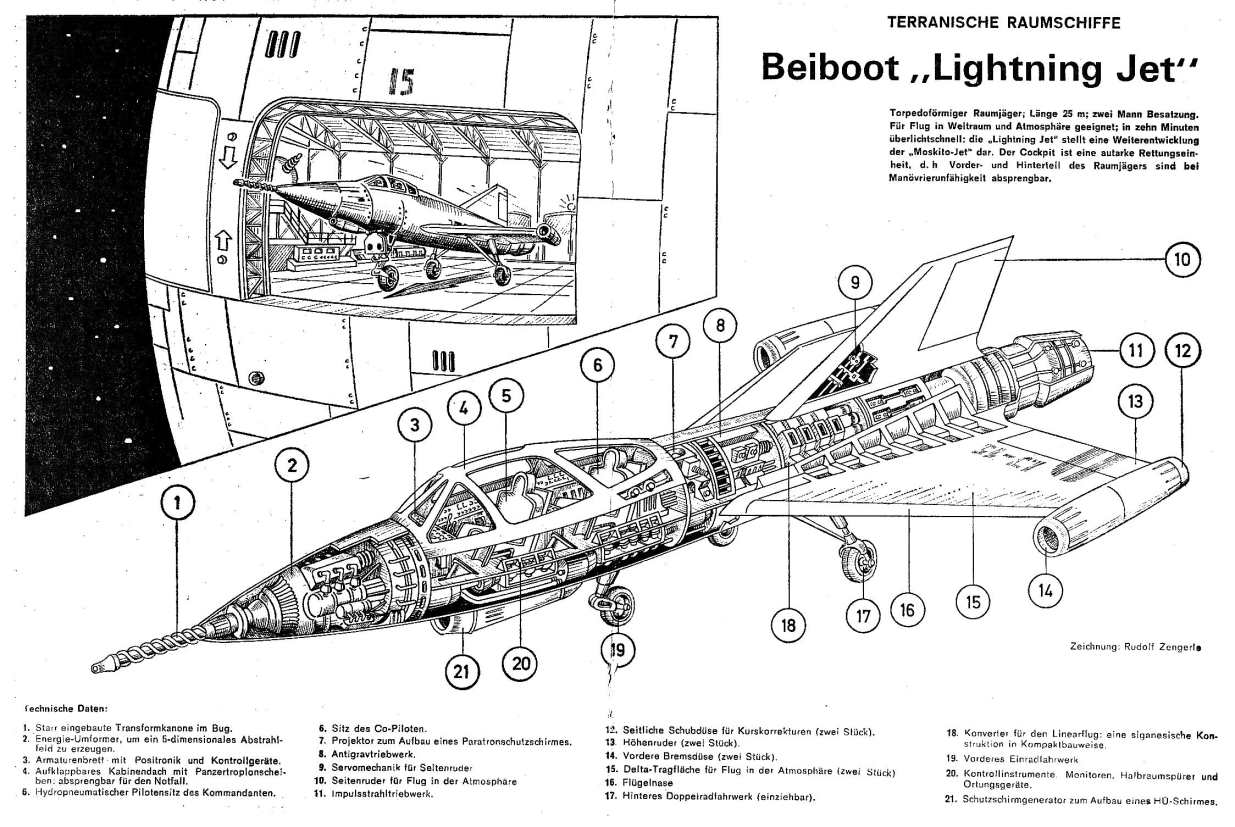 Beiboot Typ Lightning-Jet (Weiterentwicklung der Moskito-Jet) Terranische Raumschiffe |