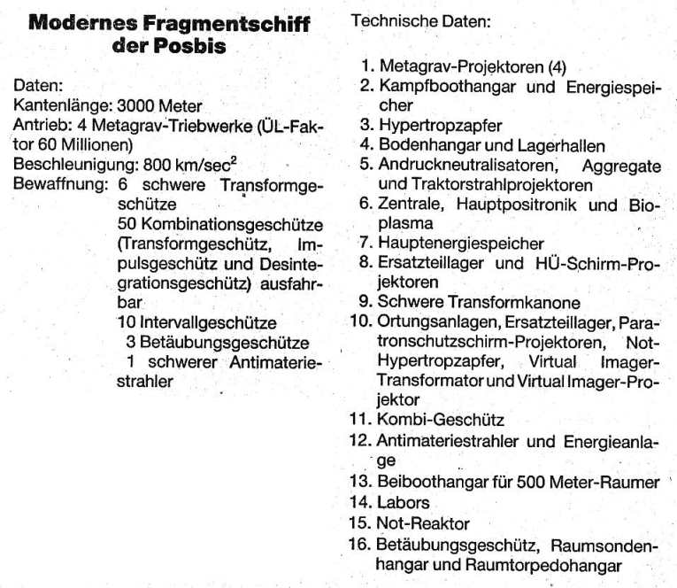 Modernes Fragmentraumschiff der Posbis Extraterrestrische Raumschiffe (Milchstraße) |