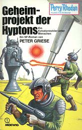 "Als die Landebeine der TRAUTE den Boden berührten, stürmte Dylah in die Zentrale. Wir dürfen nicht landen ! rief sie Wully wittert eine Gefahr ! Der Springer lachte. Hier ist alles in bester Ordnung. Im gleichen Augenblick traf ihn ein Schuß in die Brust. Weitere Schüße peitschten auf. Die Roboter gingen kein Risiko ein. Jeder, der eine Waffe trug, wurde sofort ausgeschaltet ..." Die Flucht einer Handvoll Terraner vor der Macht des Konzils endet in einer Katastrophe. Denn sie geraten als Versuchsobjekte in die Gewalt der Hyptons, die mit ihrem Geheimprojekt die völlige Versklavung aller galaktischen Völker anstreben. Doch die Terraner und ihr extraterrestrischer Begleiter wehren sich gegen das schreckliche Schicksal, das sie erwartet. |
