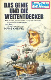 Die kleineren Kanonen schleuderten einen Hagel Steinkugeln, Rauchtöpfe und Lähmnebelprojektile auf den Piraten. Inzwischen hatte ich mein Geschütz wieder geladen und feuerte. Der Schuß zertrümmerte die Ruderanlage und Teile des Hecks. Wir rauschten an der Schnellbarke vorbei, die nun hilflos in den wellen tanzte ... Im Jahr 3562 auf Gäa gibt Atlans Extrahirn eine ganze Anzahl bisher blockierter Informationen preis. Diesmal sind es persönliche Erlebnisse des Arkoniden mit Leonardo da Vinci und anderen Größen des 15.Jahrhunderts. |
